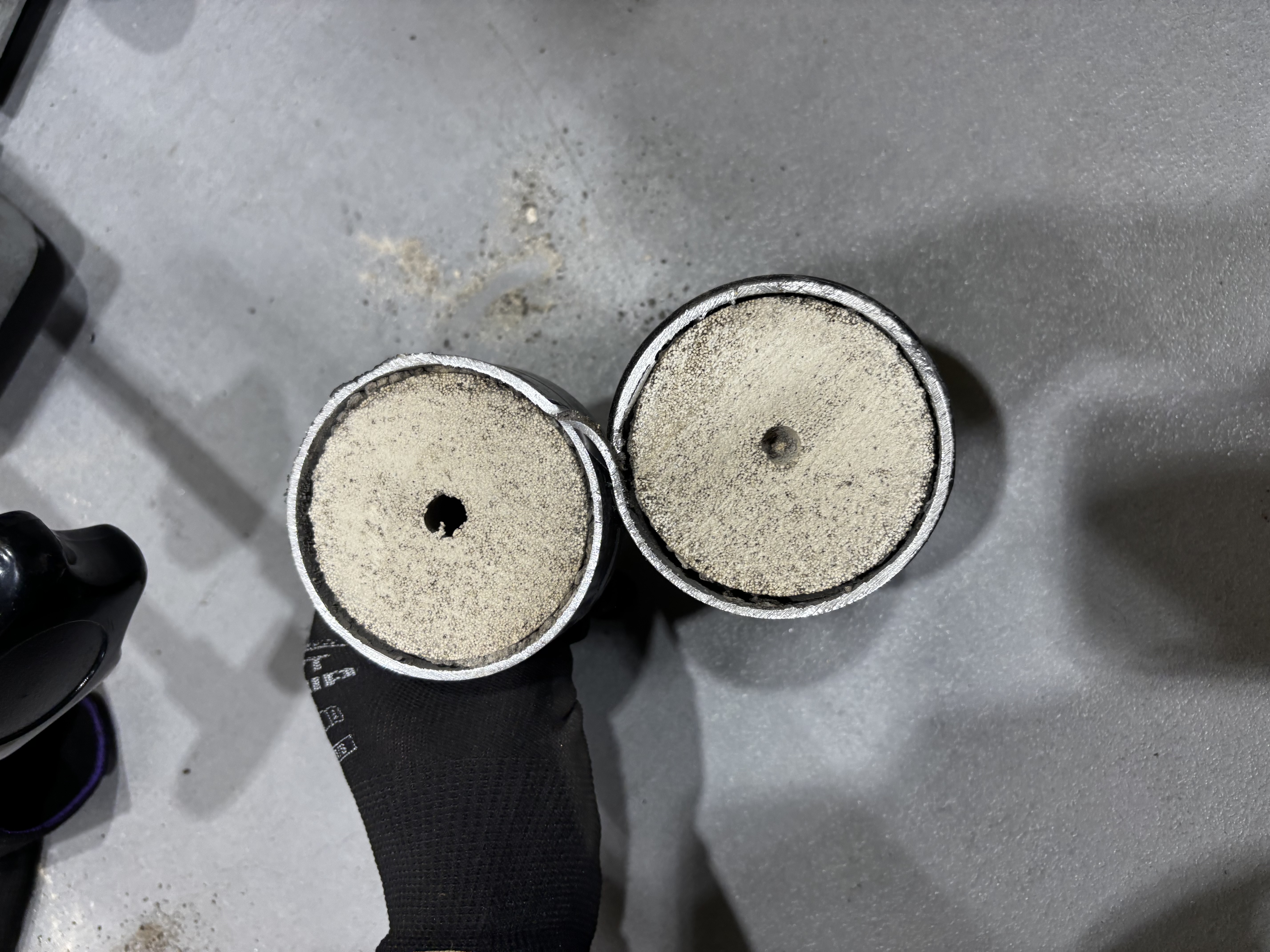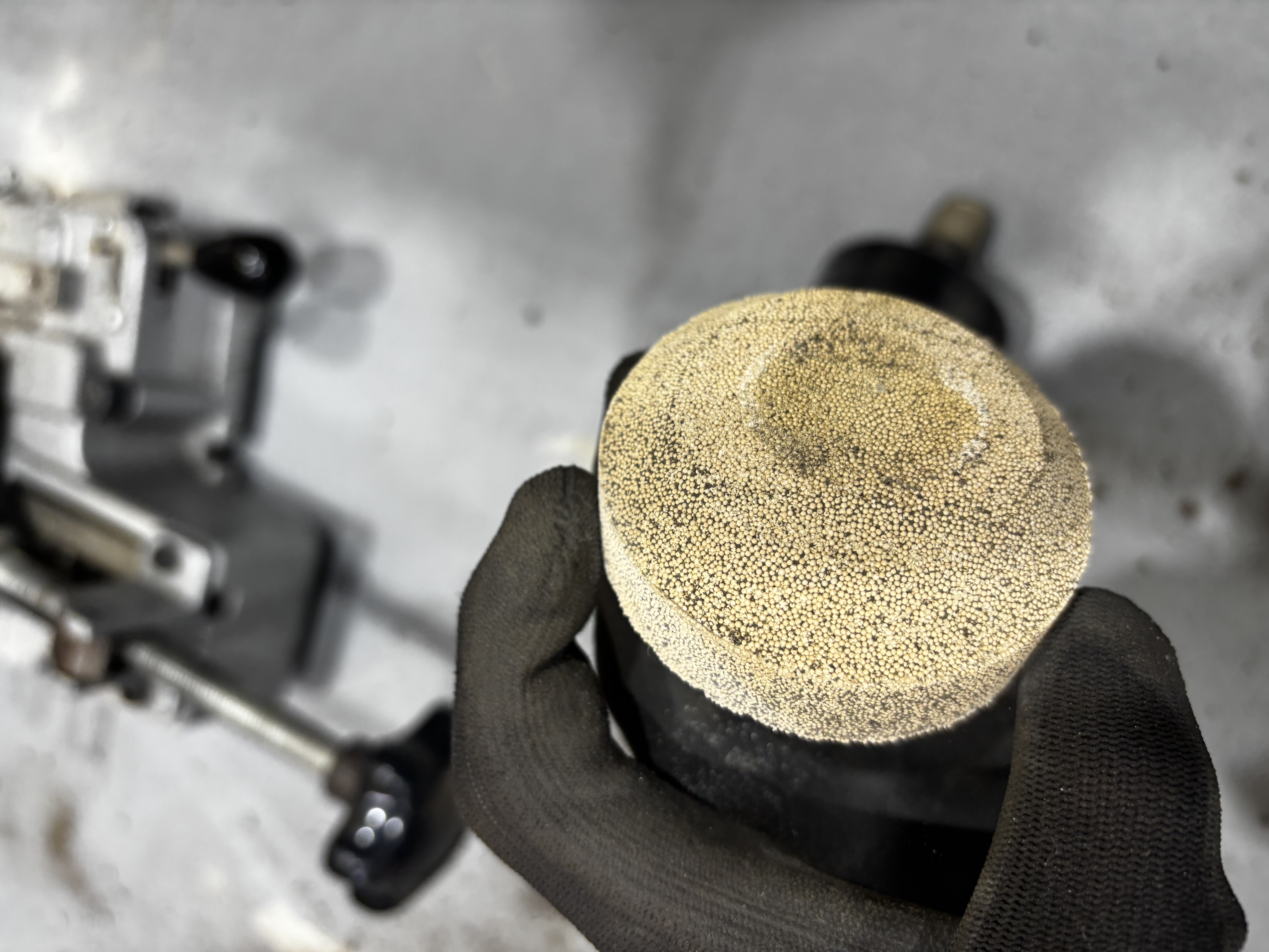 コアブロック全体に汚れが付着し、スラッジおよび油分を抱え込んでいたことが分かります。