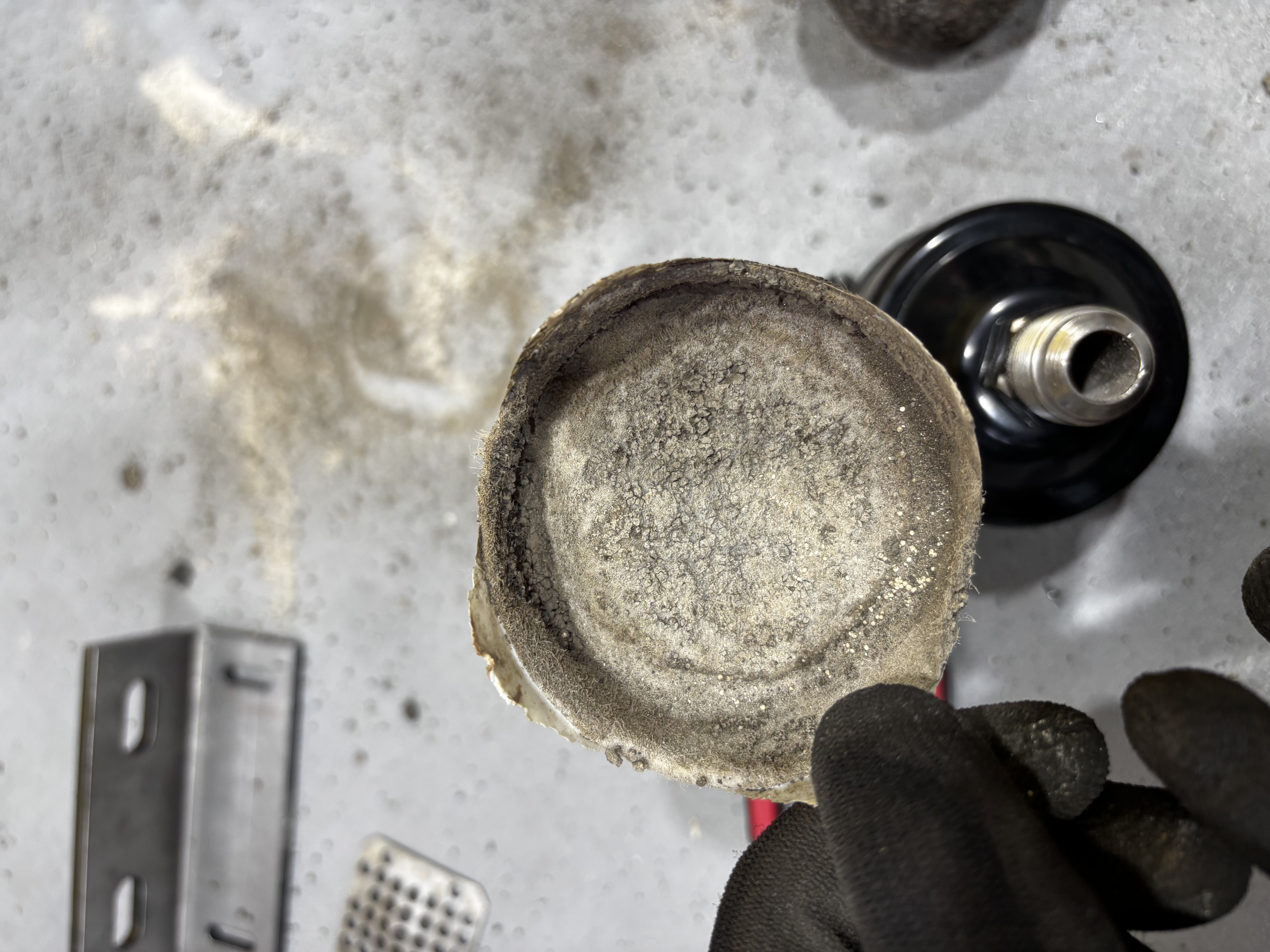 解体してみると、内部は想像以上に汚れが詰まった状態でした。また冷凍機油の劣化に伴う強烈な臭いがしました。