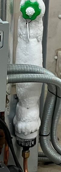 「冷凍機の配管に氷が付着している」とのご連絡をいただき、現場へ訪問しました。